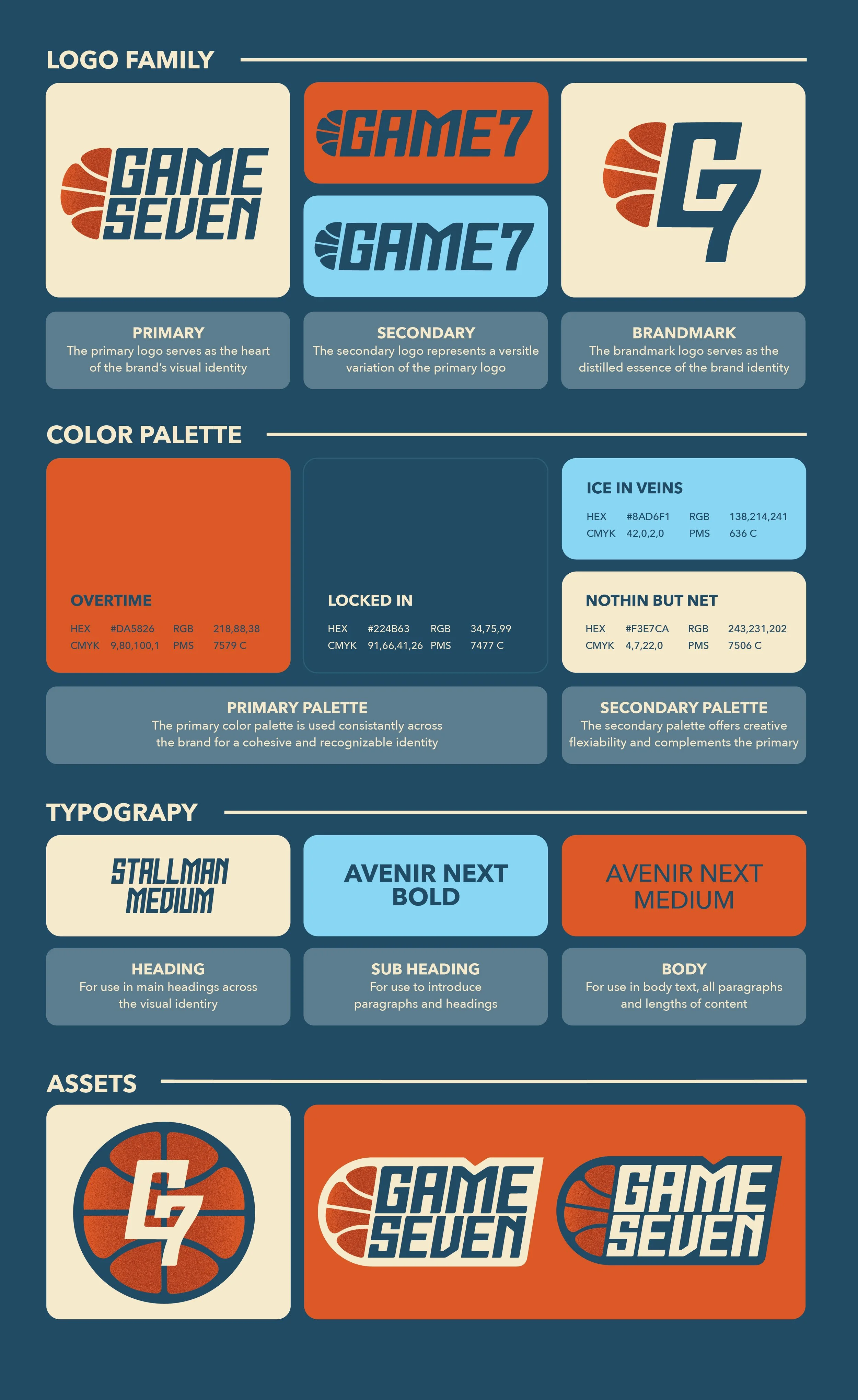 The Game Seven Podcast’s brand identity balances sharpness and warmth, creating an inviting yet bold visual experience.